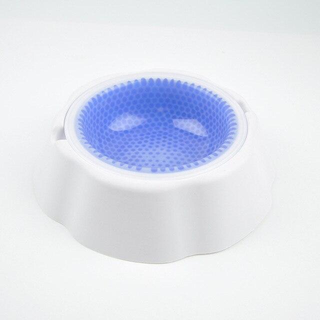 O núcleo da tigela é feito de gel, basta remover a tigela da base e colocar no congelador por 2 horas para que o gel congele e mantenha tudo fresquinho para o seu pet!